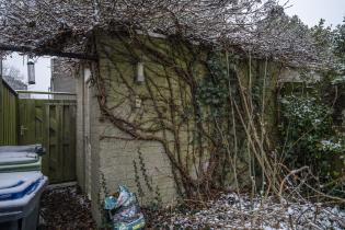 Tuin met berging en vrije achterom.
