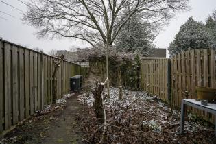 Tuin met berging en vrije achterom.