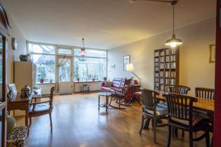 Woonkamer voorzien van houten vloer;